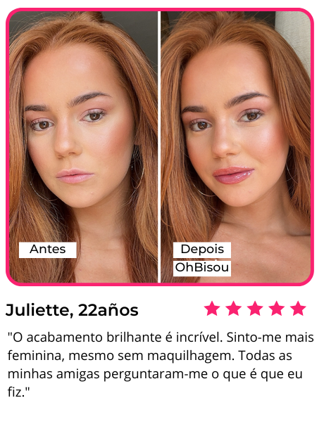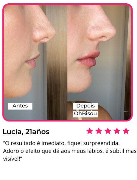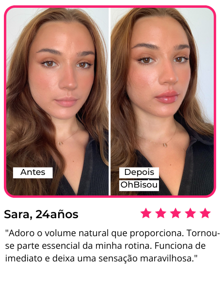 Não precisas de preenchimentos nem de mais nada. Basta aplicares o OhBisou, esperar 5 minutos e desfrutar de lábios naturalmente mais carnudos e brilhantes, com um efeito que dura até 6 horas.✨